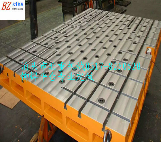 鑄鐵鉚焊平臺(tái)是鉚焊工作的基礎(chǔ)工作臺(tái).北重T型槽鉚焊平臺(tái)為了滿足鉚焊工藝需求,鑄鐵工作臺(tái)面加工縱向或橫向T型槽,適當(dāng)位置加工圓孔,大型鉚焊平臺(tái)采用HT200-300灰鐵鑄造而成.鉚焊平板臺(tái)面經(jīng)過(guò)人工刮研處理,在鉚焊工作中其作用不容小視.使用鉚焊平臺(tái)運(yùn)用到工作中,可提高工作效率增強(qiáng)產(chǎn)品質(zhì)量.